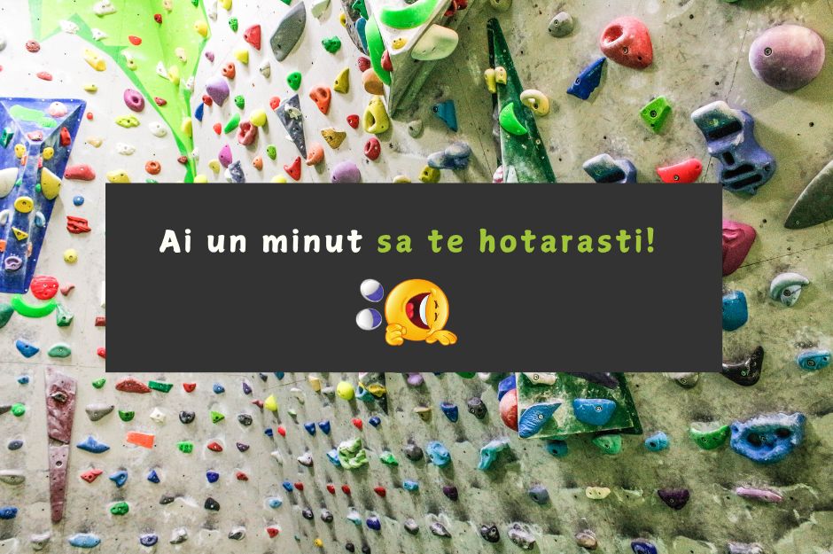 Recent, m-am catarat alaturi de niste adulti incepatori, intr-o sala in care puteau incerca atat escalada asigurata cu coarda, cat si bouldering-ul.